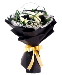 •Funeral Flowers Bouquet used: Lovely Hand Bouquet: 6 black colored roses, 6 white roses, baby breath and many more